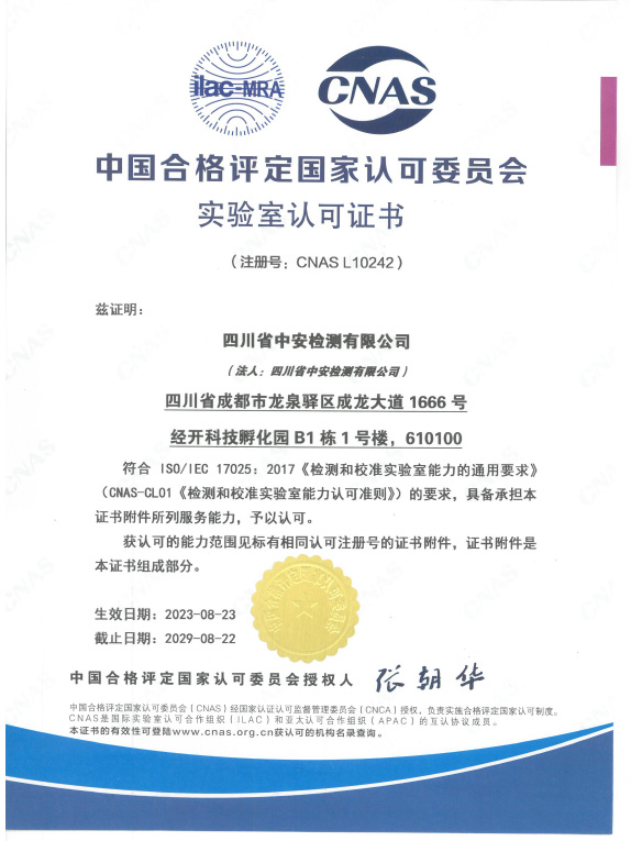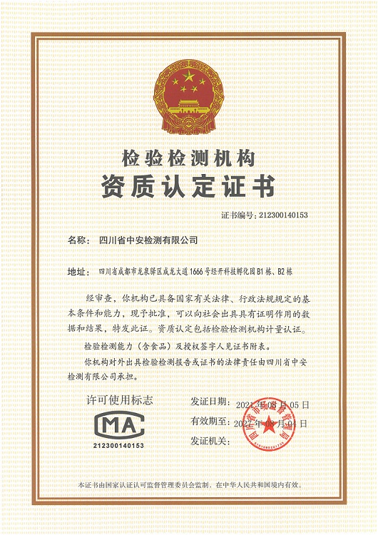 Sichuan Safety Testing Center Co??.,LTD. 四川省中安檢測有限公司 版權所有 蜀ICP備15017687號