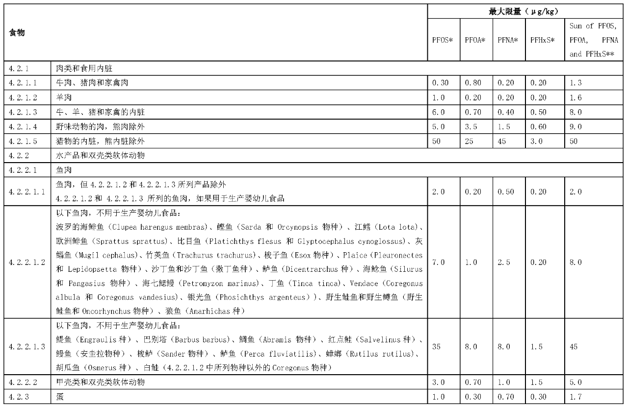 2023年4月25日,歐盟委員會法規(EU)2023/915發布,修訂了關于部分食品中全氟烷基物質最高含量的法規,自2023年5月15日起施行。